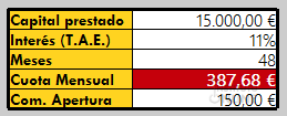 Capital prestado: 15.000 €