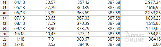 Vamos a calcular el plan de amortización del préstamo, es decir, vamos a detallar lo que vamos a pagar cada mes y en qué conceptos.