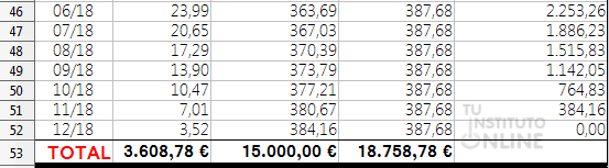 Por tanto, en total nos toca devolver 18.758,78 € (que incluye el importe de la comisión de apertura)