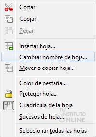 Si necesitamos insertar una hoja de cálculo, utilizaremos el botón derecho del ratón para pulsar una etiqueta de hoja. Después haremos clic con el botón derecho del ratón en la opción Insertar hoja del menú contextual.