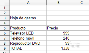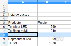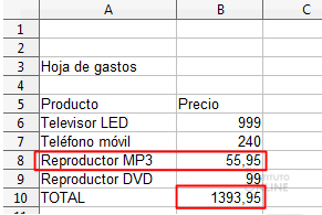 Ve a la celda del total (B10). Modifica el número con el nuevo importe.
