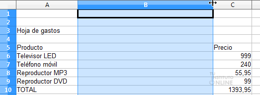 Amplía la columna. Sitúate en el límite de la columna B y cuando aparezca una flecha negra, desplázala a la derecha.