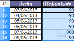 Alojamiento. Selecciona con el ratón el rango de celdas B11:B16.