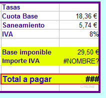 Ve a las celdas de Importe IVA y total a pagar y modifica las fórmulas, poniendo donde corresponda el texto "Base_imponible".