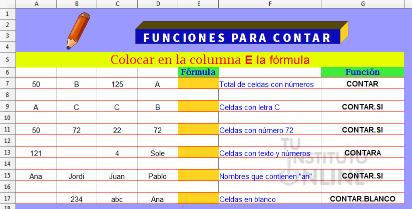 Crea un cuadro de texto con el texto “Funciones para contar”.