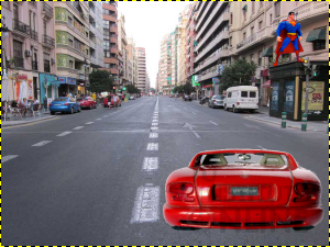 El objetivo va a ser a partir de una imagen con una calle, un Superman y un coche de juguete, y hacer una composición que incluya partes de todas ellas. Usaremos como base la imagen de la calle y sobre ella copiaremos los otros elementos.
