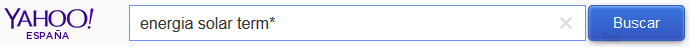 El uso del comodín * implica que la búsqueda se aplicará a aquellas páginas web que contengan la combinación de las palabras "energia", "solar" y todas las palabras que empiecen por "term", independientemente de lo que siga. Por ejemplo, se devolverá tanto térmica, como término, termonuclear, termodinámica, etc.