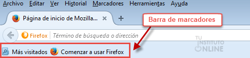 Para activar la barra iremos al menú Ver → Barras de herramientas → Barra de herramientas de marcadores.