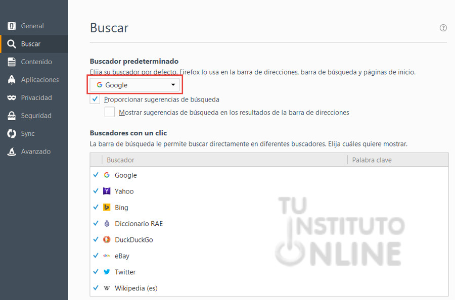 Vamos a usar distintos motores de búsqueda en el navegador Firefox.