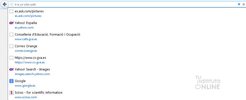 Si ya tenemos añadido el marcador del portal TuInstitutoOnline, añade otra dirección web.