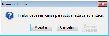 Si Firefox pide reiniciar el navegador, responde pulsando el botón Aceptar. A partir de ahora ya no se almacenará el historial de navegación.