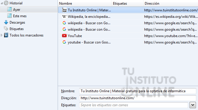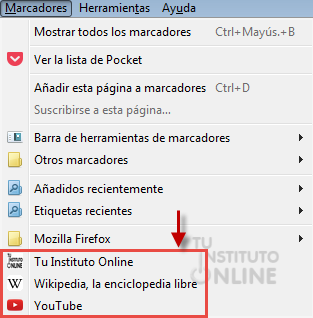 En otros navegadores distintos a Firefox, esta lista recibe el nombre de Favoritos o Preferidos.