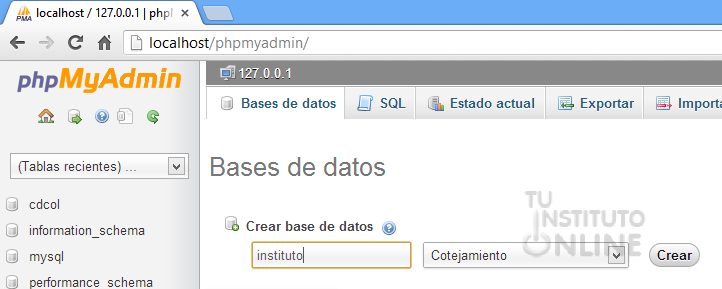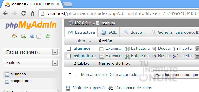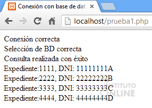 Por ejemplo, para conectarnos a la base de datos creada en el punto anterior la llamada sería la siguiente: