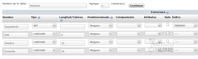 Cada fila será un vector con tantos elementos como campos tiene la tabla. El resultado, por tanto, será: