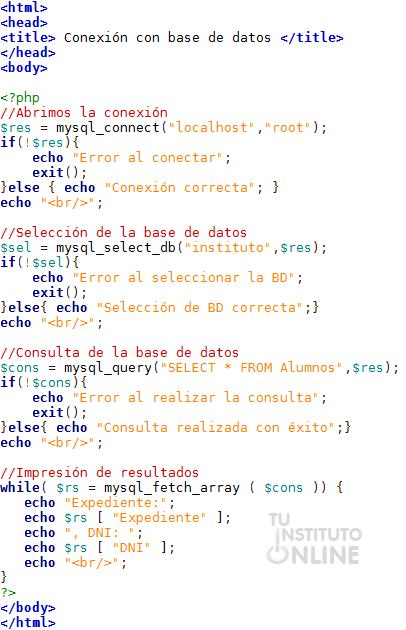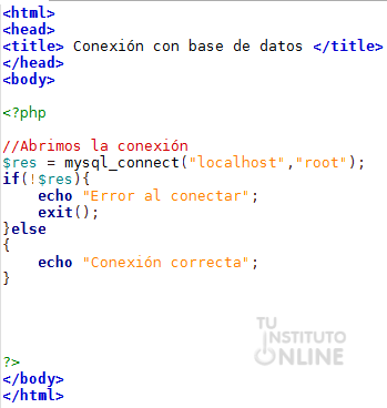 Para establecer la conexión con una base de datos MySQL desde PHP se utiliza la función mysql_connect. Ésta tiene la siguiente sintaxis: